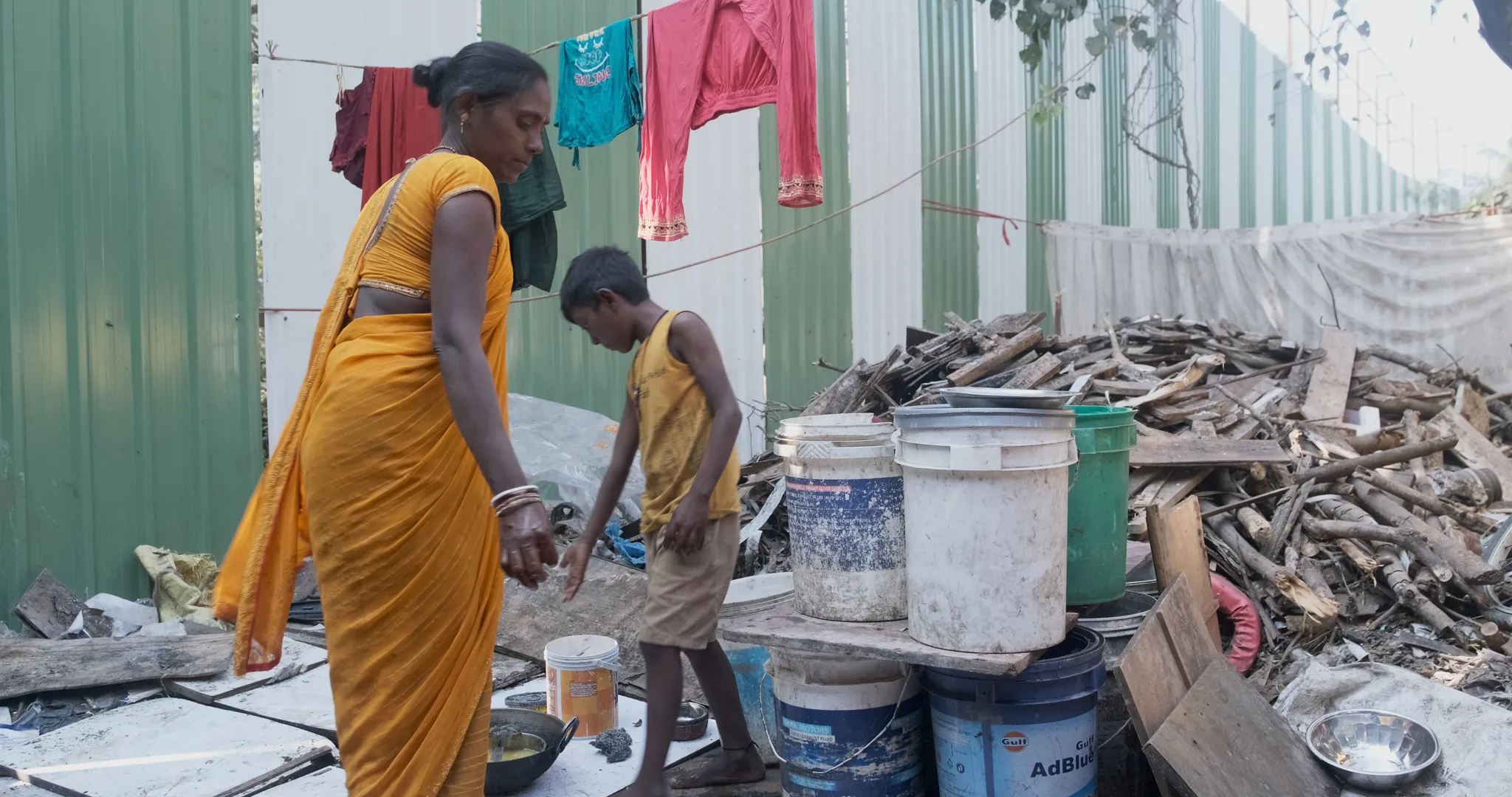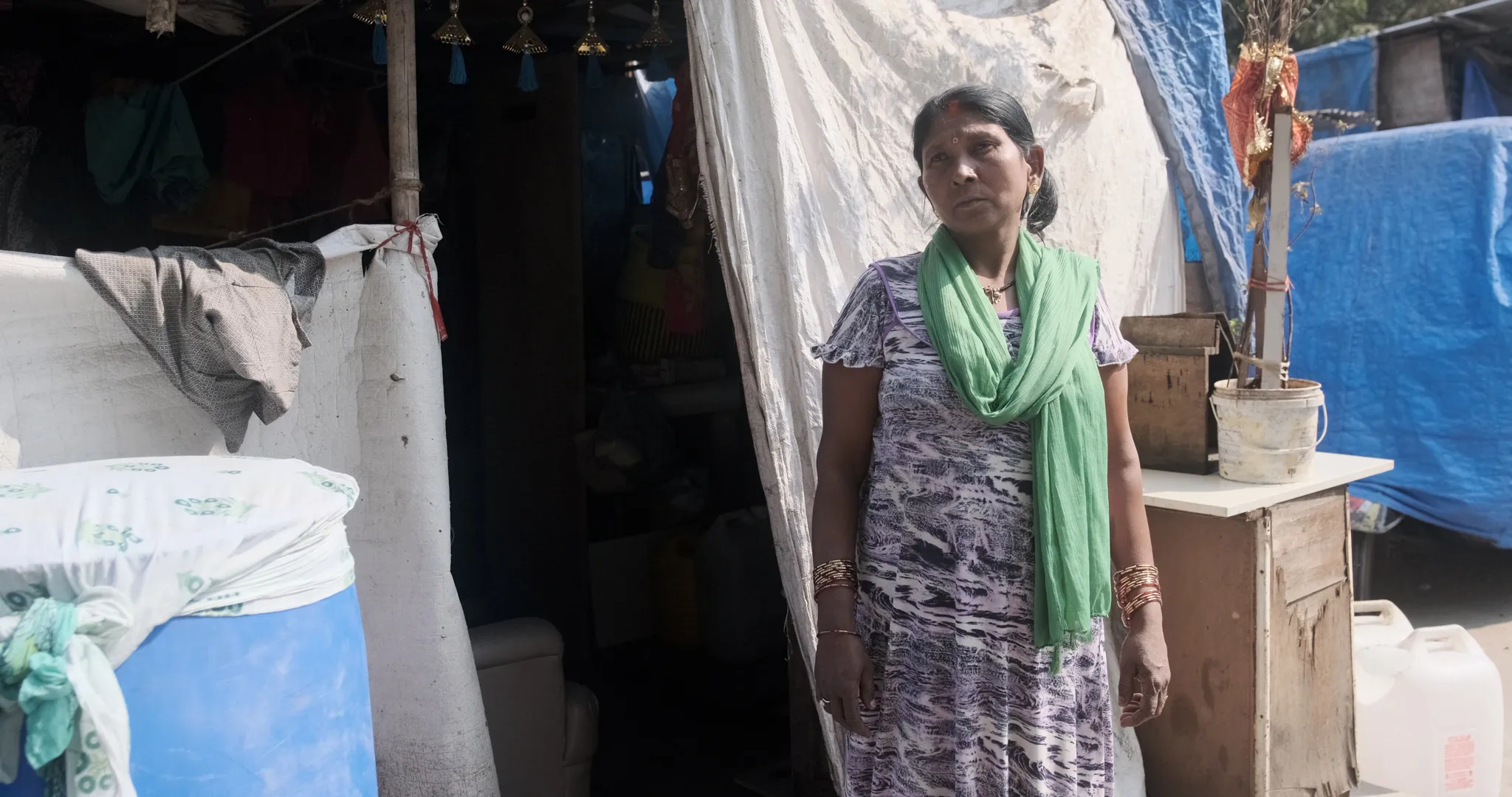 Most residents have left the area, but Chauhan and her family remain, building a makeshift home held together by bamboo poles and plastic sheets.
